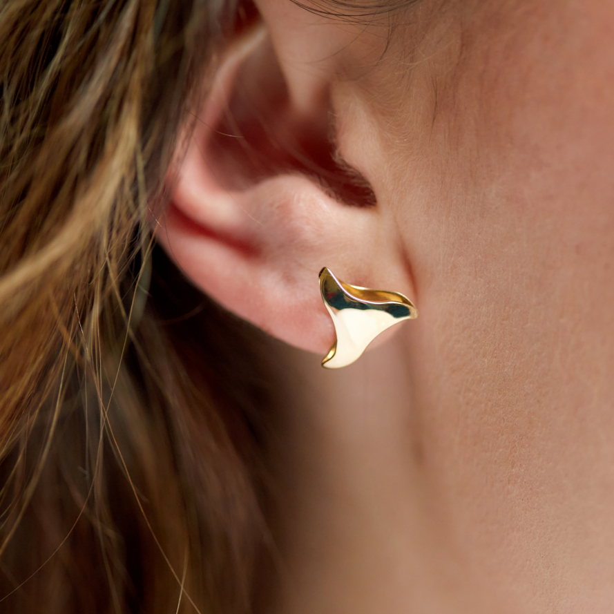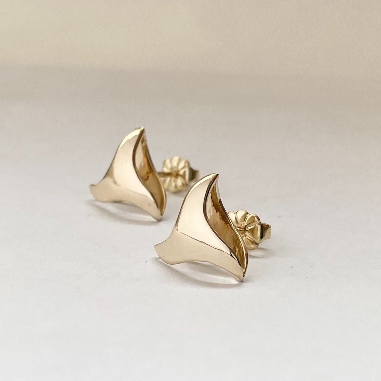 New! 3-dimensional Caireen stud earrings now available in 14 karat yellow gold.