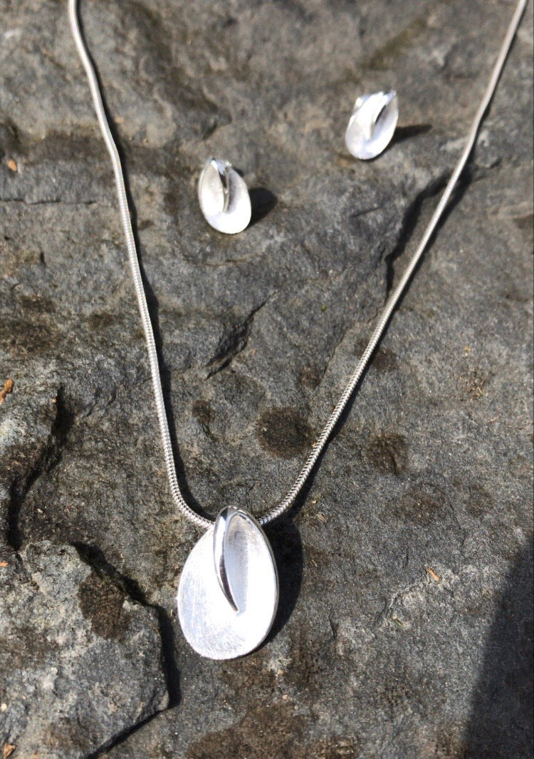 The Brushed Single Leaf Pendant is a stunning, modern addition to our silver jewelry collection. Complete your look with the matching stud earrings!
