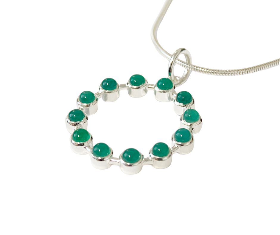 Green Onyx Circle Pendant is backordered and will ship as soon as it is back in stock.