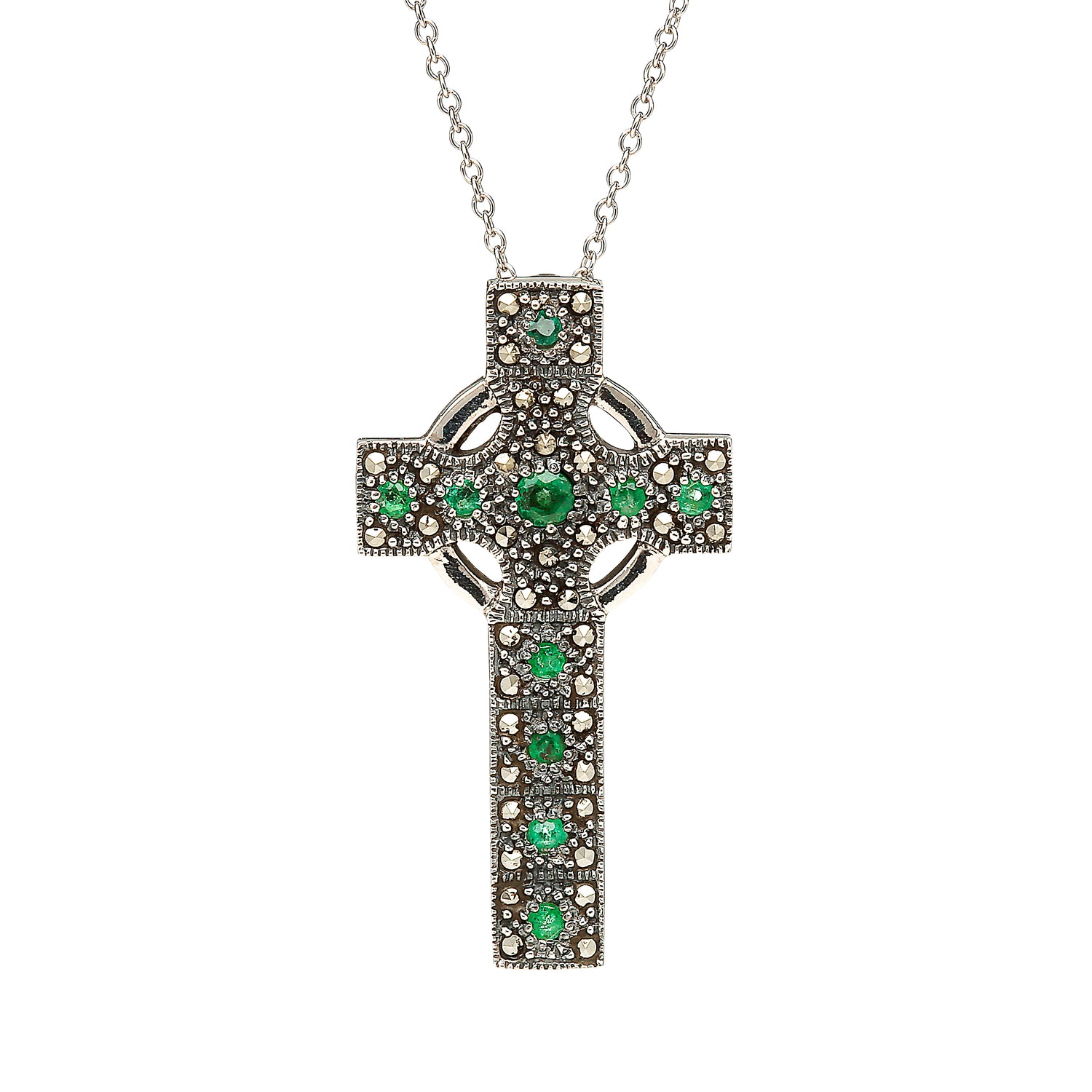 Marcasite & Emerarld Set Celtic Cross - Silver is backordered and will ship as soon as it is back in stock.