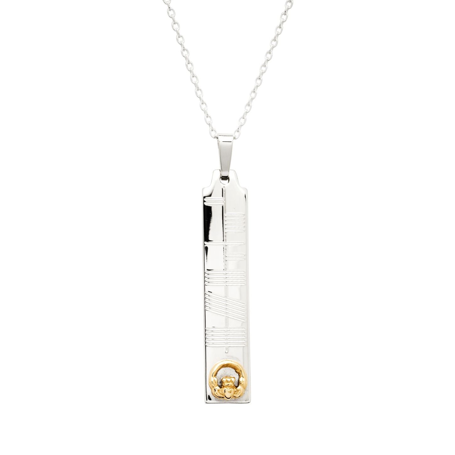 Silver Ogham Pendant with 14K Symbol - Claddagh