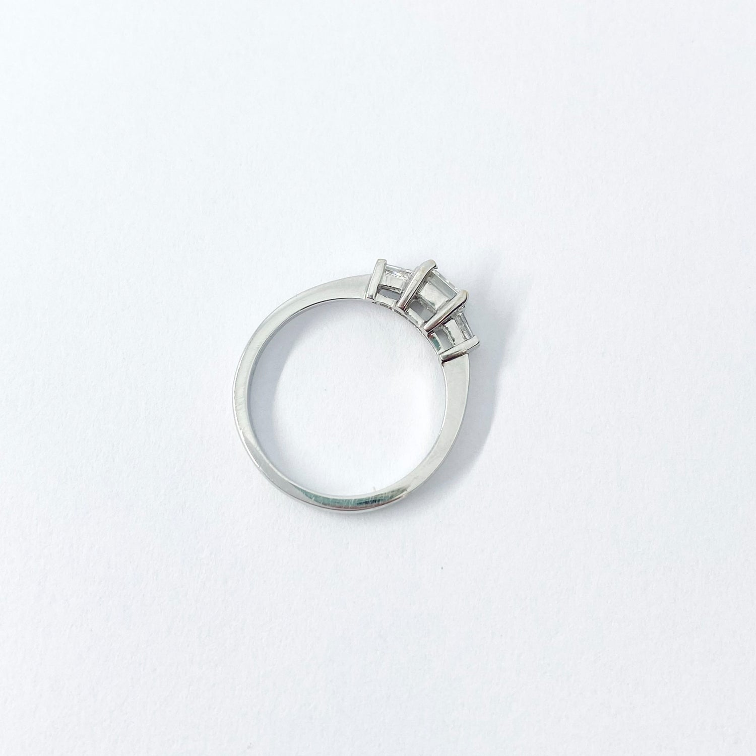 18 karat white gold 3 stone diamond baguette ring