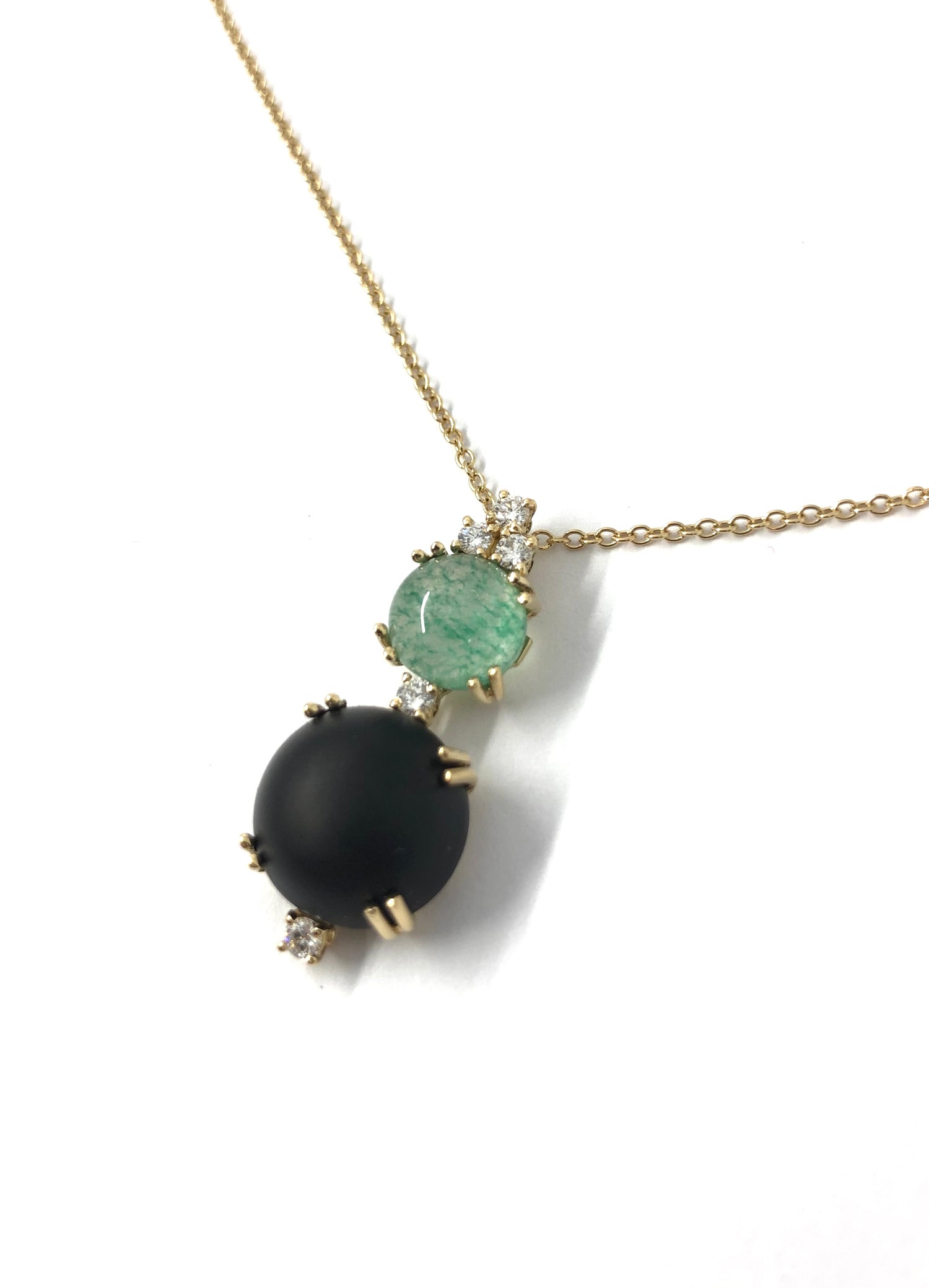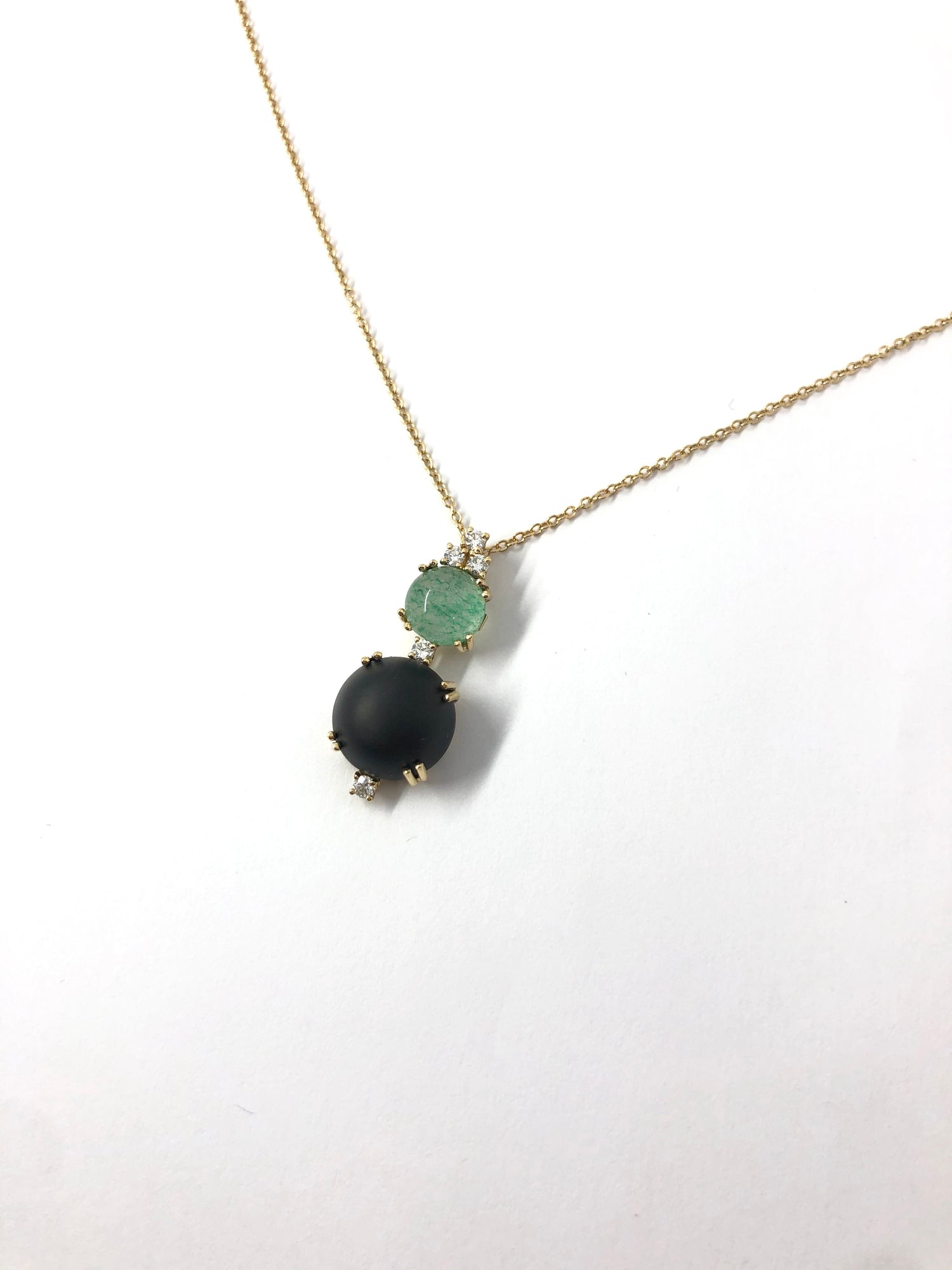 Jet, Diamond and Green Agate Stone Pendant - 18 Karat is backordered and will ship as soon as it is back in stock.