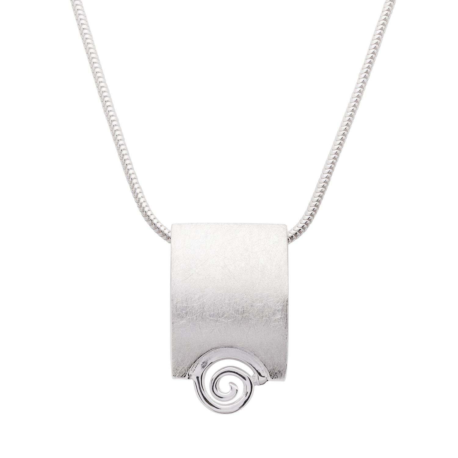 Introducing our stunning modern brushed silver spiral pendant, a captivating addition to our contemporary silver jewelry line. The spiral, a meaningful Celtic symbol, evokes feelings of eternal beauty and continuous allure.