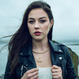Explore the stunning styling of our Large 14 Karat Sibeal pendant! Create an edgy, fashionable look by layering it with your other chunky chains, just like our model.