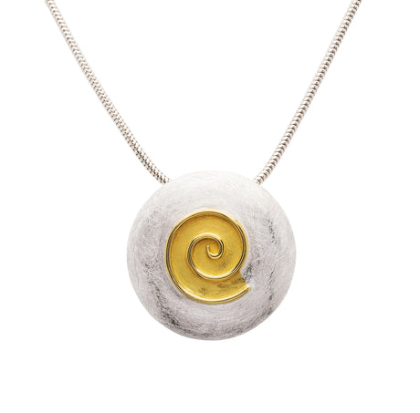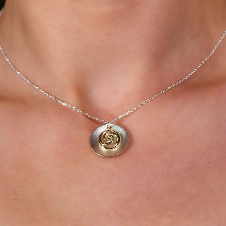 Spiral 9K Gold Charm & Brushed Sterling Silver Disc Pendant