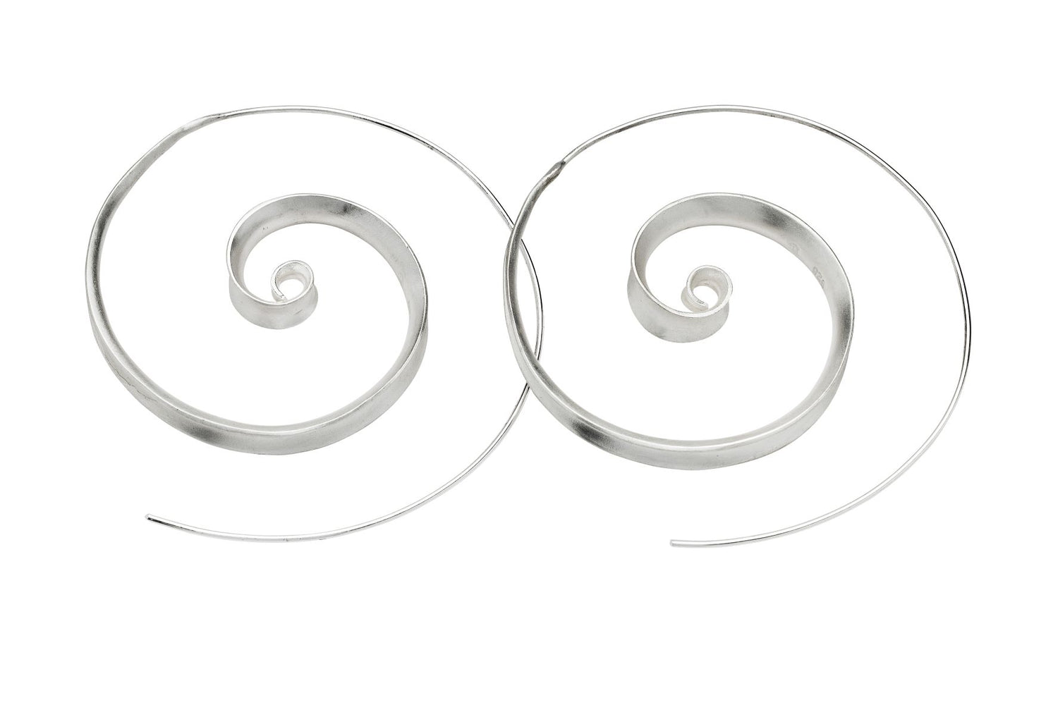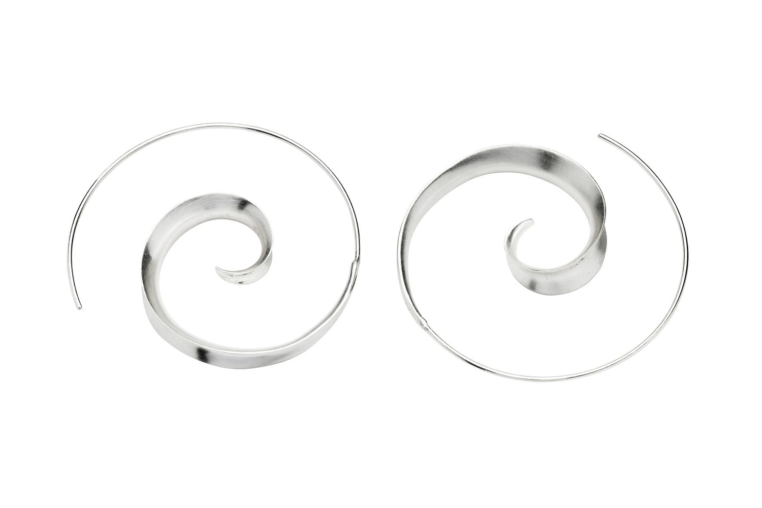 New to our sterling silver contemporary range! These delicate spiral earrings have a matt finish and make a bold, modern statement!