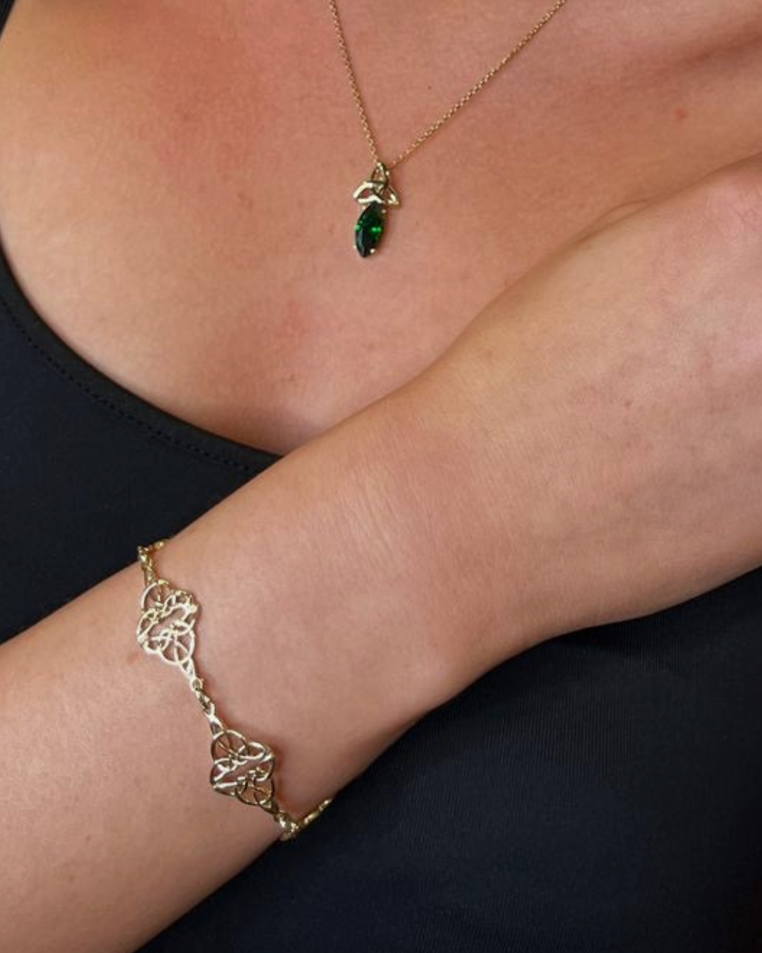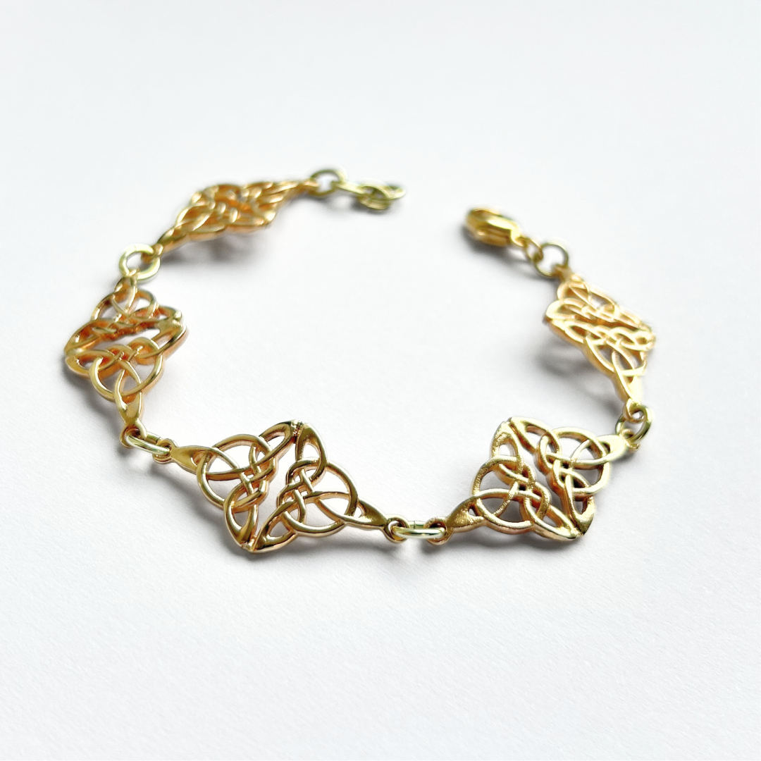 Experience the intricate beauty of ancient Celtic art with our 14 Karat Trinity Knot Bracelet. Each link is thoughtfully designed with knotwork, inspired by the rich history of manuscript and interlace art.