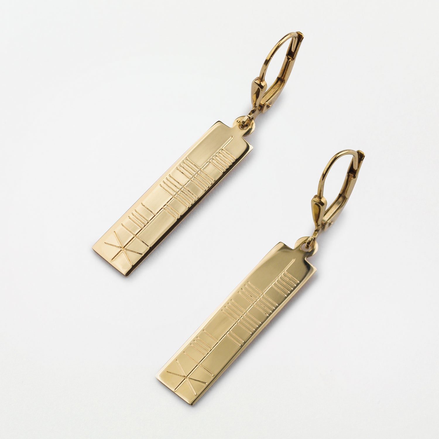 Experience the allure of ancient Ireland with our Ogham Gold Earrings. These exquisite pieces feature personalized inscriptions in the Ogham alphabet, reminiscent of the iconic standing stones found throughout the landscape. Made from sterling silver or 9k,14k, and 18k gold, each pair comes with luxurious lever back ear wires for ultimate comfort and security. Each piece is Irish hallmarked and presented in a stunning Brian de Staic display box, complete with an informational leaflet on the Ogham Script. Elevate your style and connect with the rich culture of Ireland with these Ogham Gold Earrings.