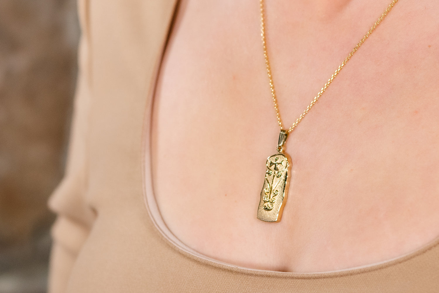 Size: 31mm x 11.5 This pendant comes with an 18inch chain. If a longer chain is required, please email us at info@briandestaic.com