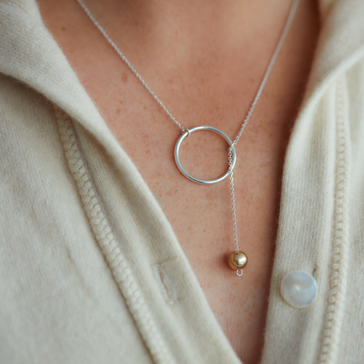 Elegant Circle with 9ct Gold Bead - Sterling Silver is backordered and will ship as soon as it is back in stock.