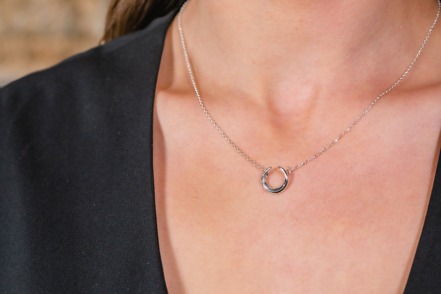 The Celts believed in the magical powers of torcs, crescent-shaped collar neck pieces that they wore to protect themselves against harm. This 'Saoirse' pendant, named after the Irish word for 'freedom', symbolizes courage and strength and is the perfect size to layer with other favorites or wear alone. Complete your set with matching Saoirse earrings. Also available in 14 karat yellow gold.