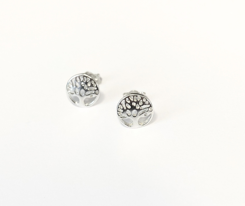 These delicate Tree of Life stud earrings are simply charming! Measuring just 7mm, each silver earring is a subtle yet meaningful accessory symbolizing wisdom, family, and growth. Perfect for adding a touch of significance to your everyday look.